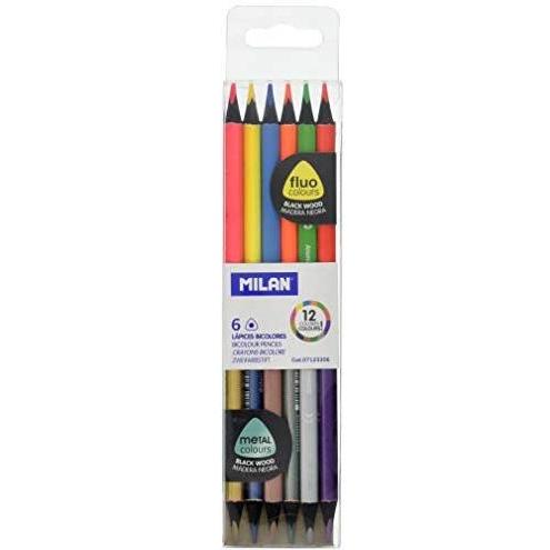 Lápices de colores Milan Bicolor Fluo/Metal 6u