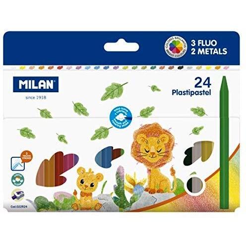 MILAN - Caja 12 Plastipastel redondos (contiene 2 colores fluo) -24 Plastipastel redondos (contiene 3 colores fluo y 2 metal)