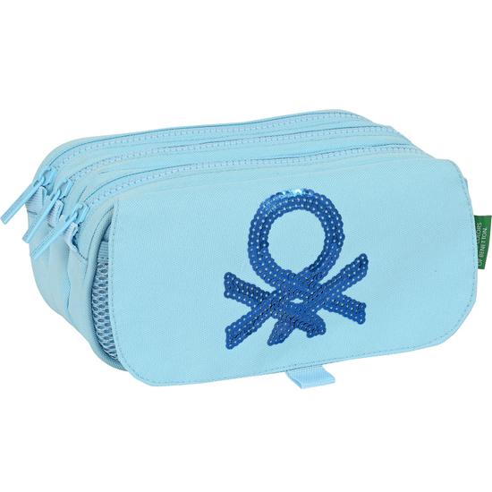 Benetton-Portatodo Triple Benetton Sequins Azul claro (21,5 x 10 x 8 cm)