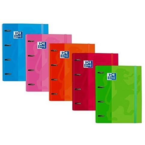 Oxford europeanbinder classic carpeta de 4 anillas formato a4+ con recambio cuadriculado 5x5mm y 4 taladros - cierre con goma elastica - colores surtidos tendencia (10 uds)