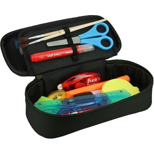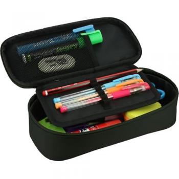 Grafoplás - Estuche Escolar 3 Compartimentos, Rectangular bits & Bobs Negro, Gran Compartimento Principal Rígido,Bolsillo Interior Rejilla, Compartimento Intermedio con Banda Elástica para 12 Lápices