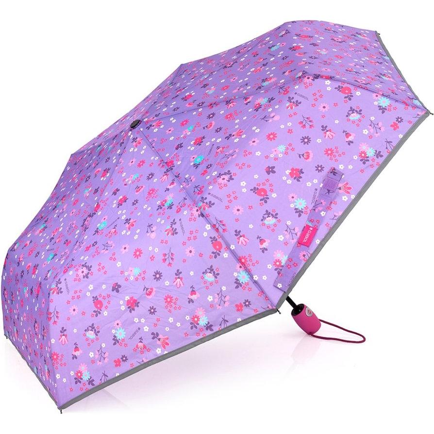 Paraguas plegable Gabol VIOLET apertura automática y detalle reflectante.