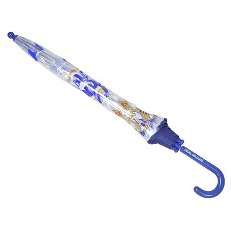 CyP Brands- Real Madrid- Paraguas infantil, Paraguas Manual para Niños, Transparente, 8 Varillas y Tubo Metálico de Gran Resistencia, Producto Oficial