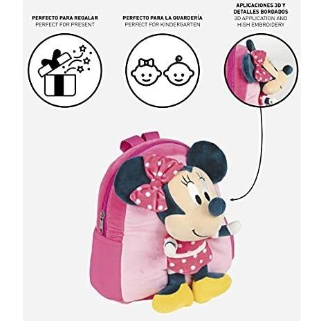 Artesania Cerda Mochila Guardería Infantil Regalo con Peluche Minnie Mouse 3D - Artesania Cerdá - Regalos Infantiles Escuela