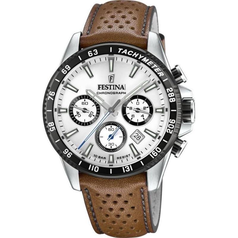 Reloj Festina Timeless Cronógrafo con correa de piel y esfera blanca F20561-1 F205611 100M para hombre blanco