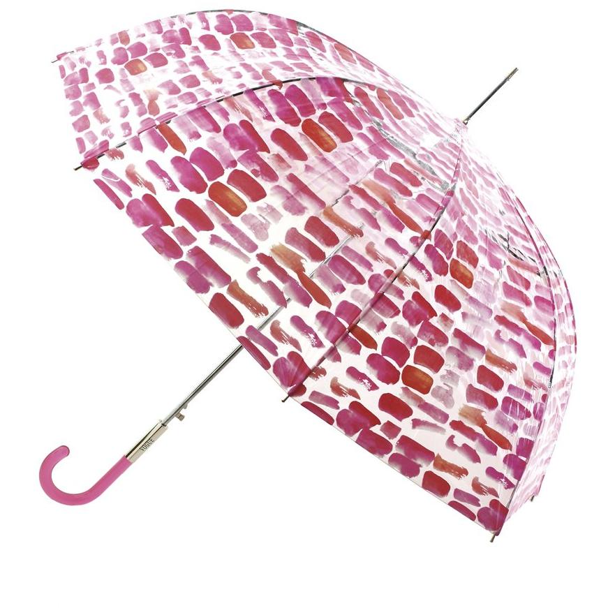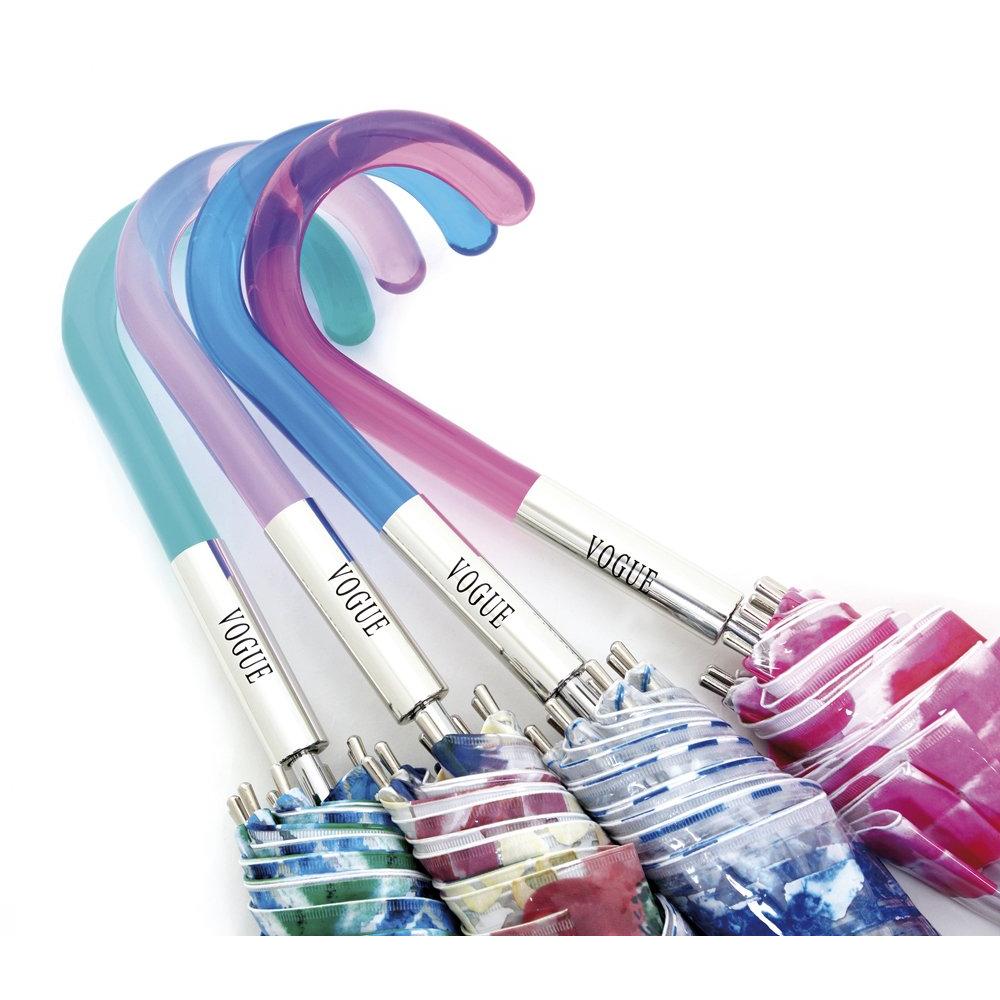 Diseño y funcionalidad se fusionan en Este Paraguas VOGUE Transparente de Apertura automática y con Sistema antiviento. Cuatro Atractivos Estampados. (Estampado Pinceladas Rosas)