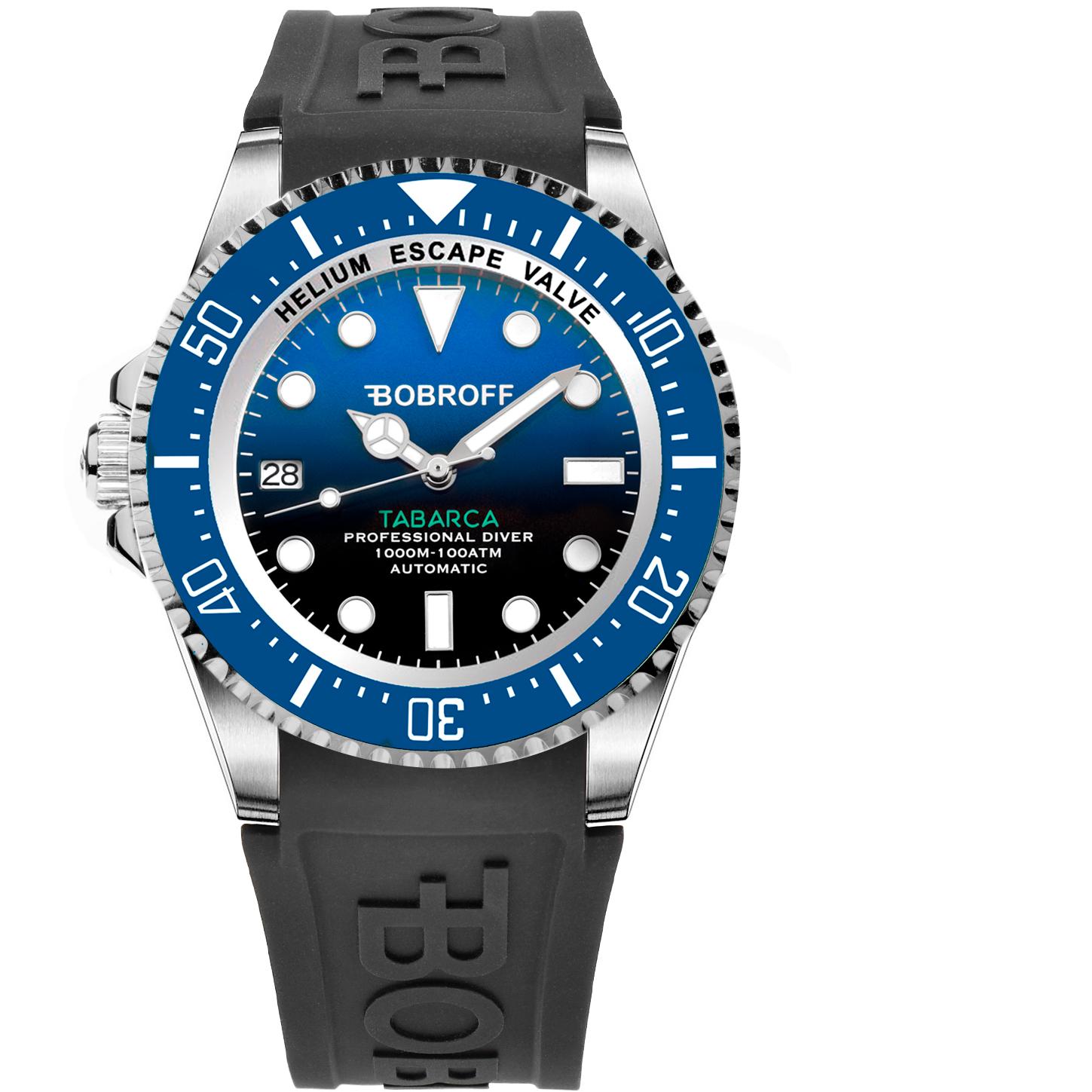 Bobroff Tabarca - Reloj de Hombre automático Diver Profesional de Buceo, 1000 m, Azul, válvula de Helio BF0003iba-BFSTN
