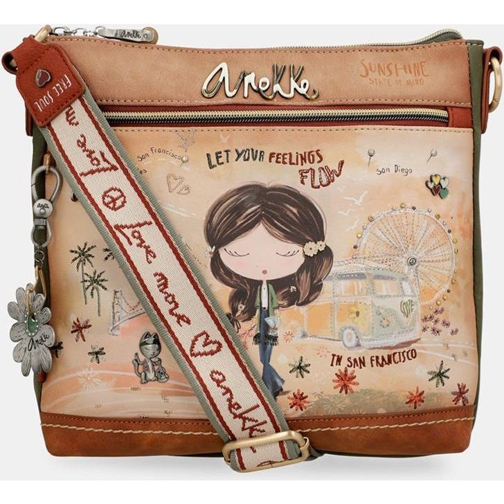 Anekke - Bandolera Peace & Love Camel con cremallera