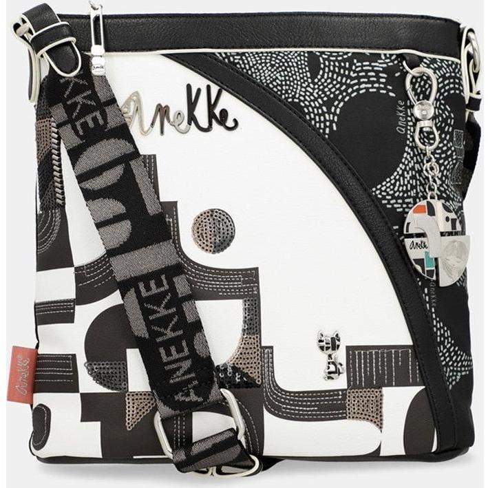 Bolso bandolera Sixties - Anekke Peace & Love - Nature Edition - Color blanco y negro - Forma rectangular - Cierre de cremallera - Bolsillo exterior - Mide 26 x 26 x 7 cm