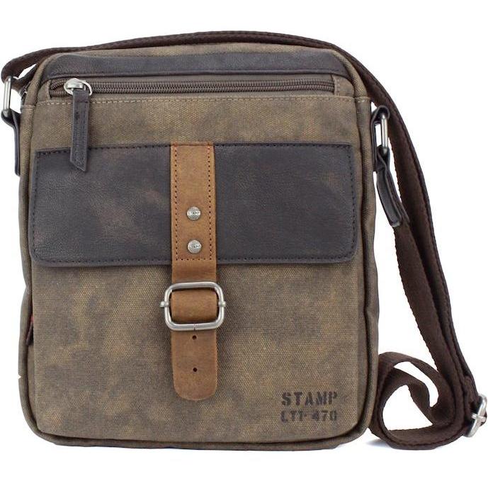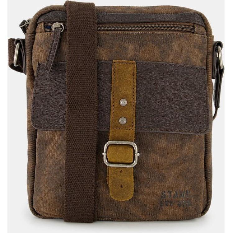 Stamp - Bandolera de hombre en lona color marrón oscuro.