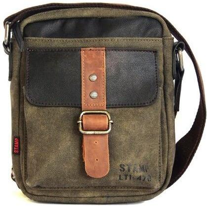 Stamp - Bandolera de hombre en lona color verde kaki.