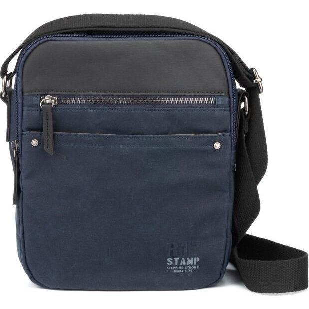 Stamp - Bandolera de hombre en lona encerada de color azul.