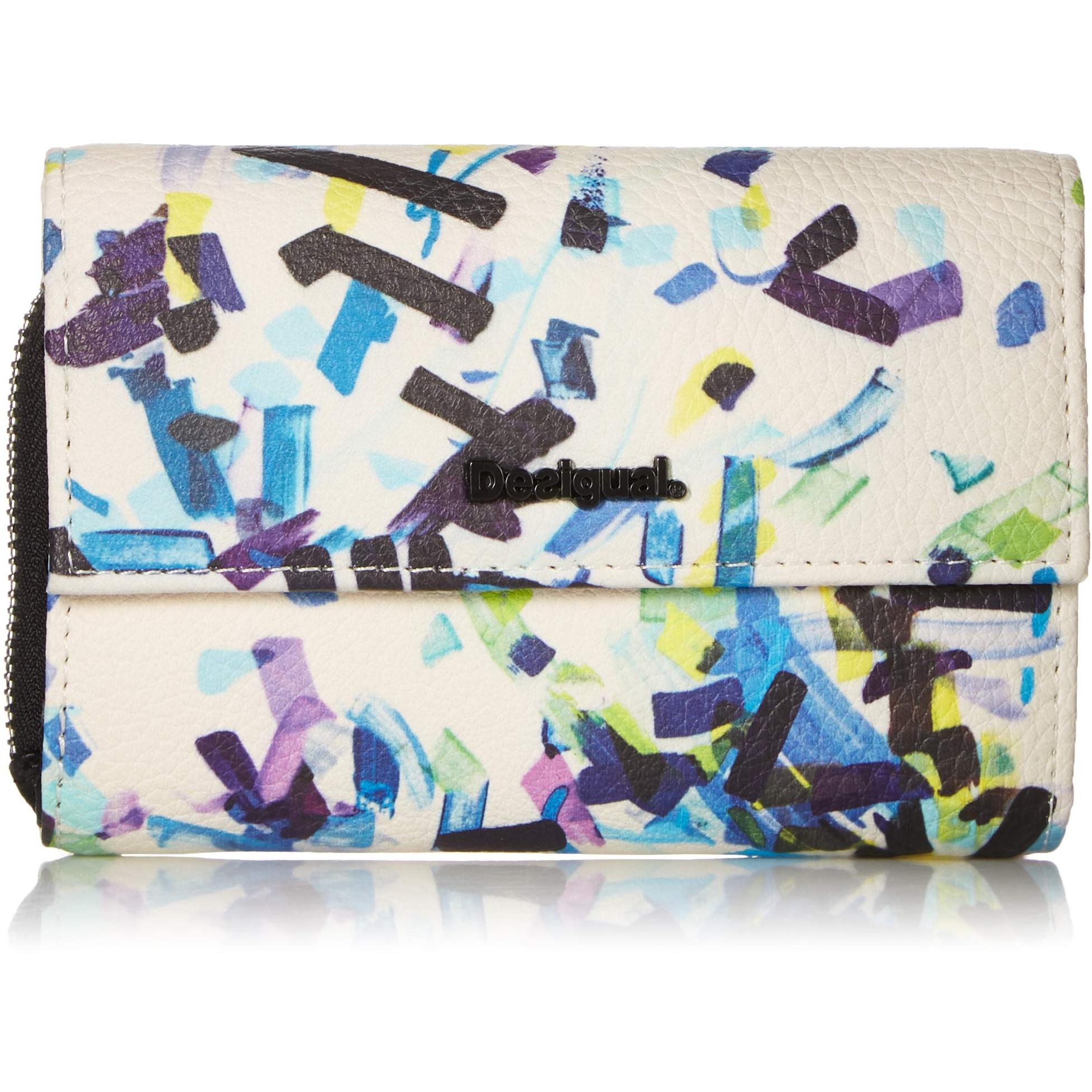 Cartera negra de Desigual con estampado confetti que combina elegancia y practicidad; sus dimensiones compactas (3 × 10,5 × 14 cm) permite ...