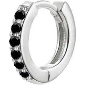 Cordoba Jewels - Pendiente single aro fabricado en acero, diseño Arito Zirconium Onix Silver - Ø 1,2 cm, hecho en España