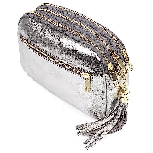 Bolso bandolera Aurora de Firenze Artegiani para mujer - Piel auténtica Ruga, Fabricado en Italia, 17x8x10 cm, Color Gris Medio