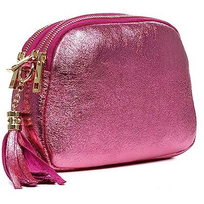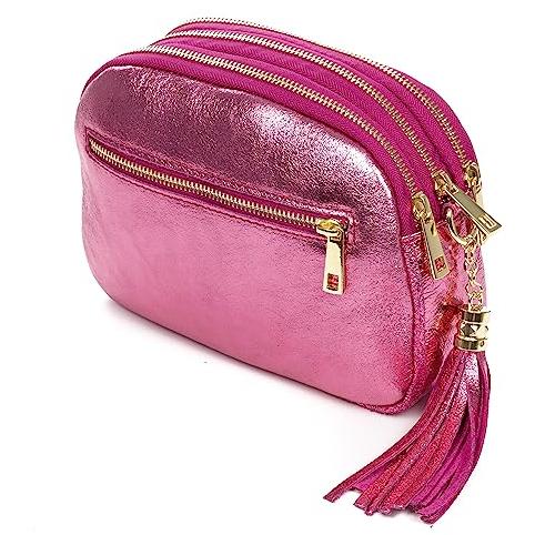 Firenze Artegiani. Aliminusa bolso bandolera Mujer. Piel auténtica Gamuza Lacada. Made in Italy. Vera Pelle Italiana.