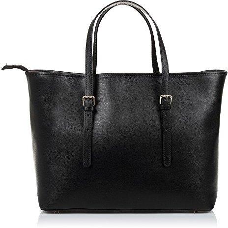 Bolso Tote de Mujer Firenze Artegiani en Piel auténtica Saffiano, 38 cm, Negro