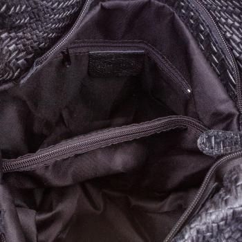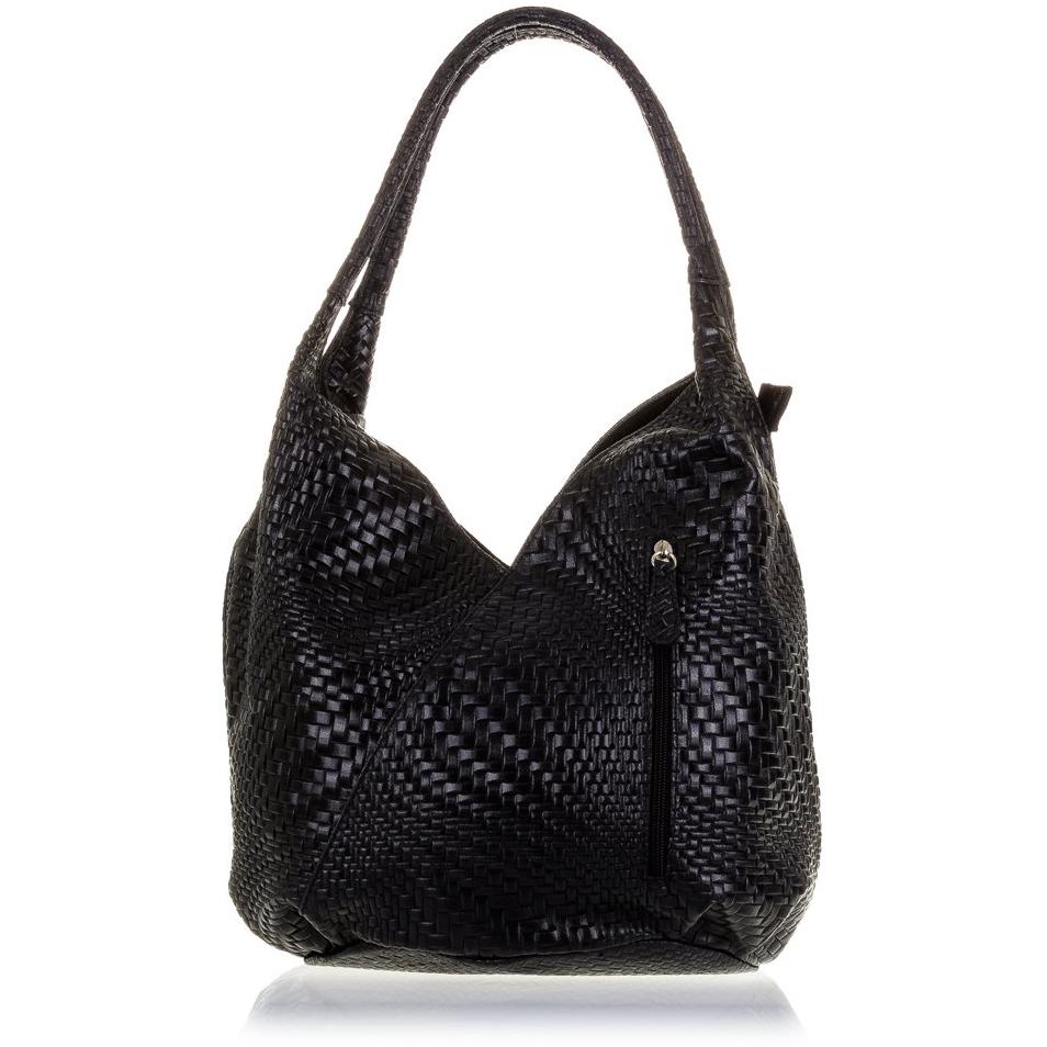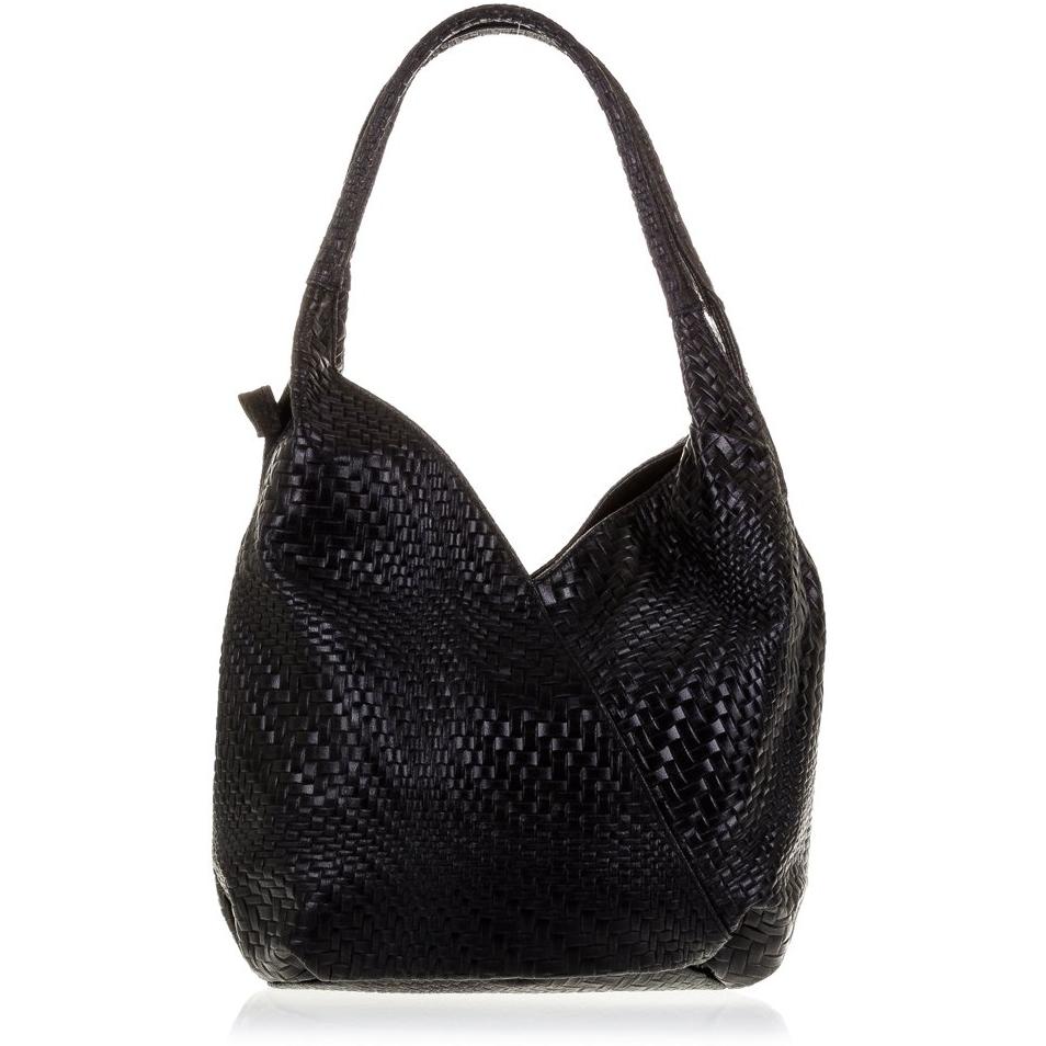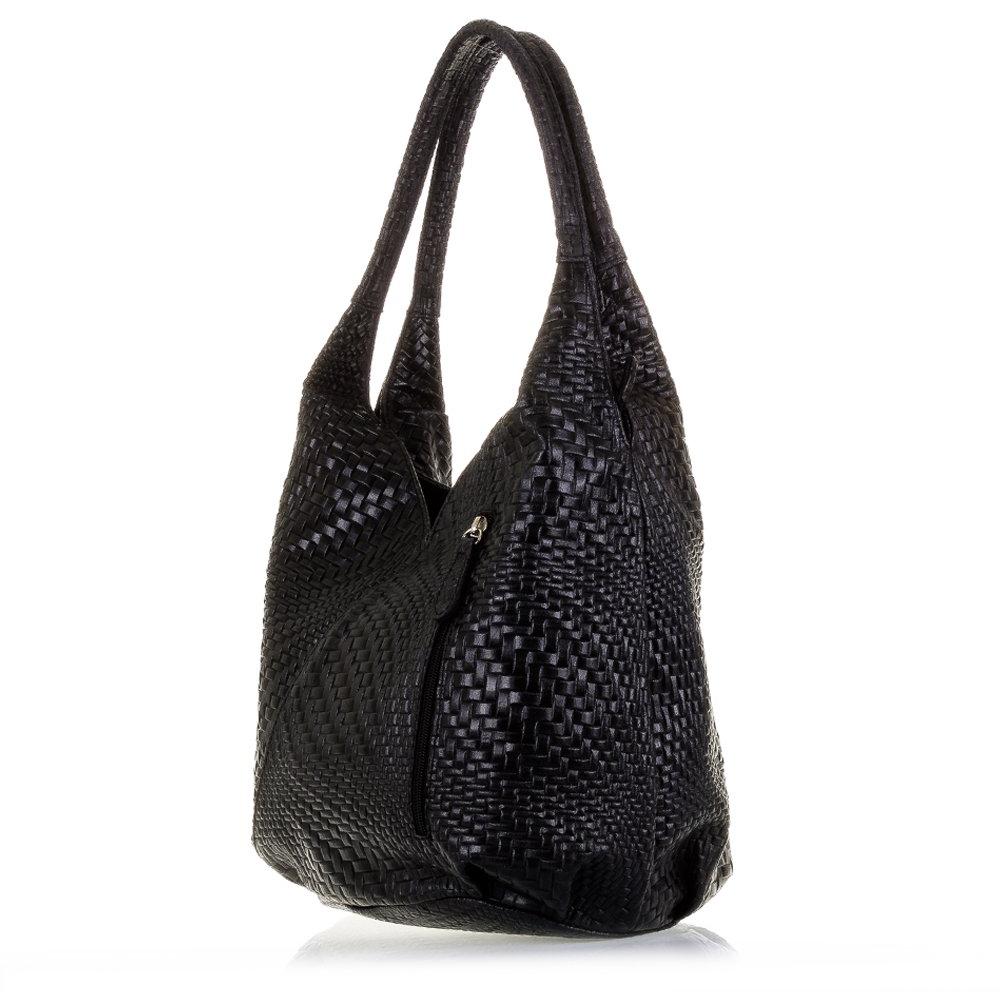 Firenze ARTEGIANI.Bolso Shopping Bag de Mujer Piel auténtica. Bolso Cuero Genuino Grabado con Motivo Trenzado geométrico y Lacado. Made IN Italy. Vera Pelle Italiana. 33x33x18 cm. Color: Negro