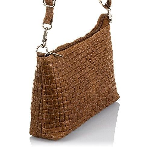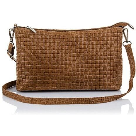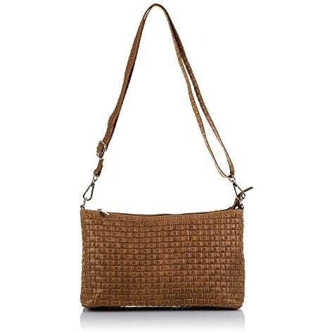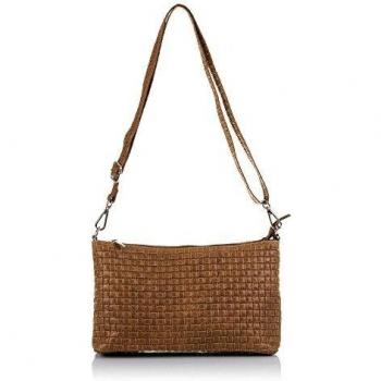 Firenze Artegiani. Zia Bolso bandolera Mujer.Piel auténtica Gamuza Grabado Geométrico . Made in Italy. Vera Pelle Italiana.