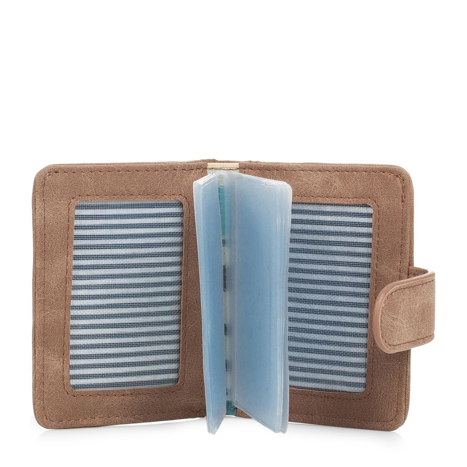 Con su elegante tono beige y material lona‑polipiel, esta cartera compacta ofrece múltiples compartimentos para tarjetas, efectivo y monedas, con c ...