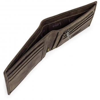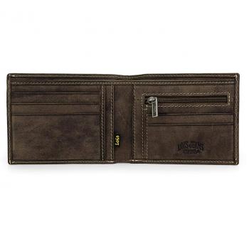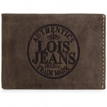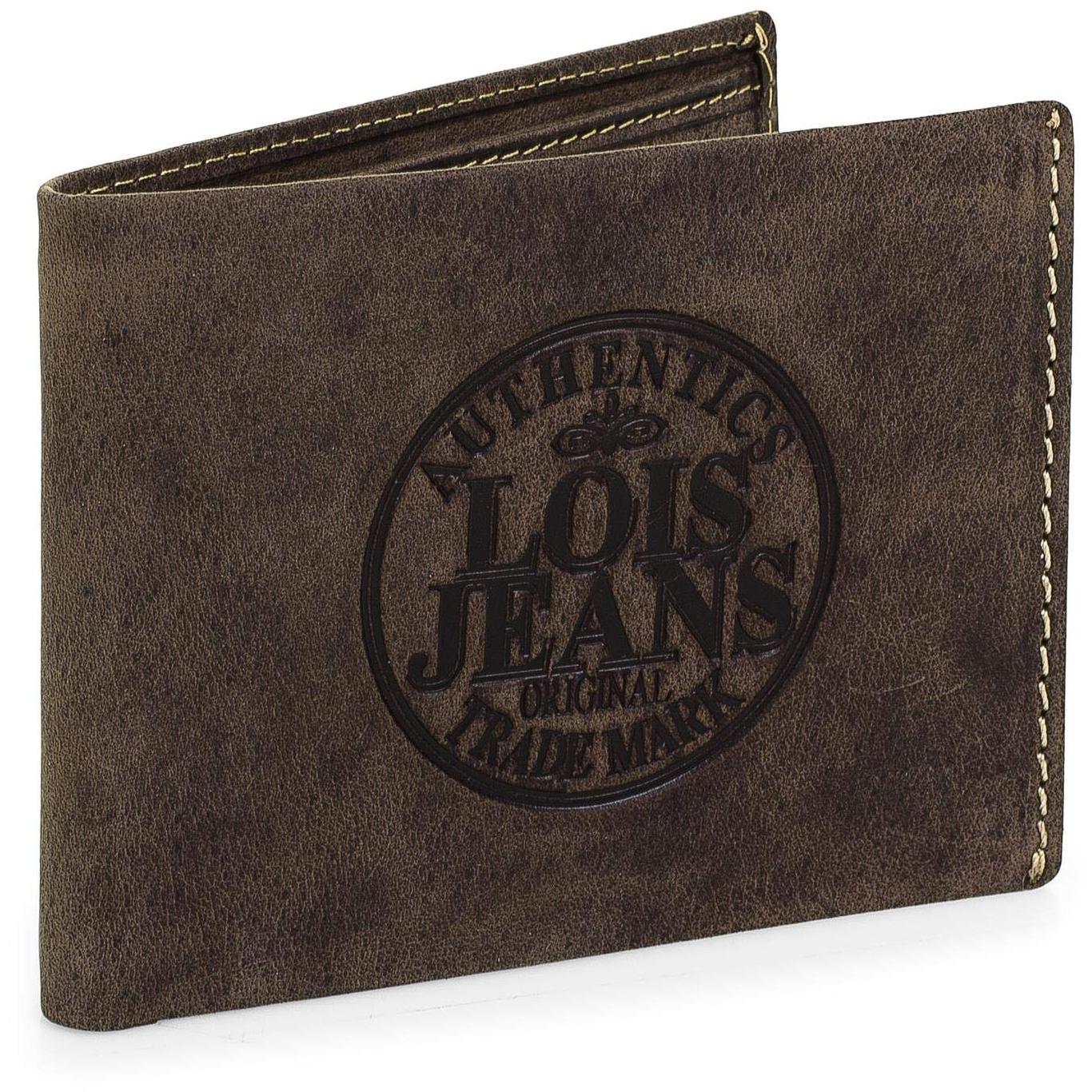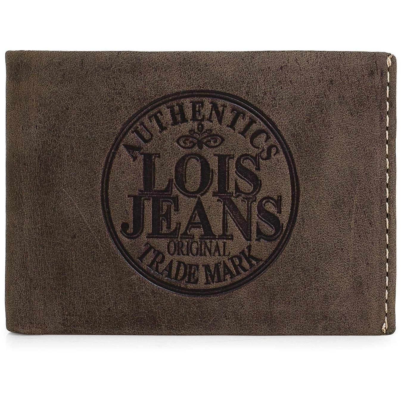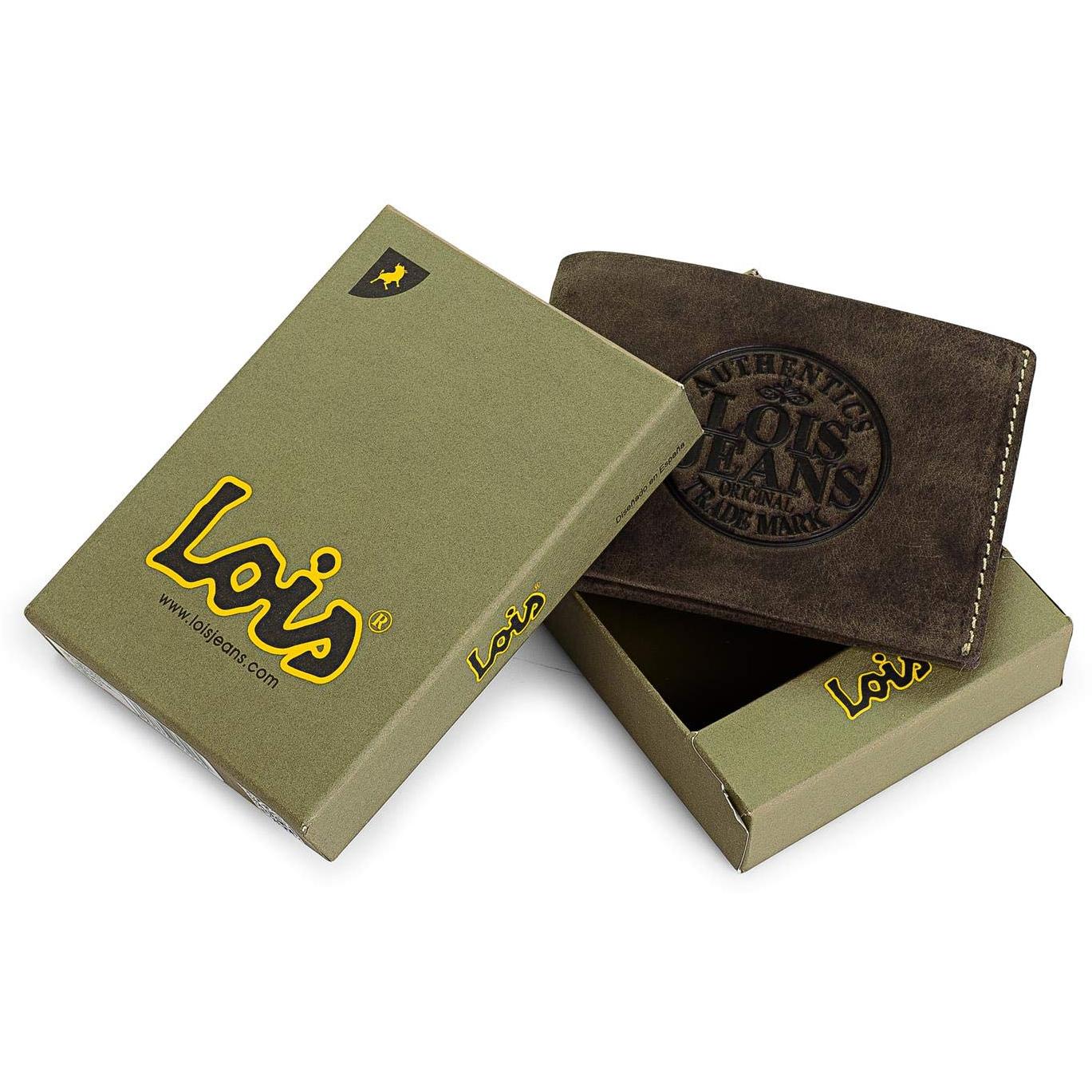 Lois - 12301 Cartera Monedero Billetero Tarjetero Hombre de Piel Genuina. Porta Monedas con Compartimento para Billetes y 7 Ranuras, Color Marron Oscuro