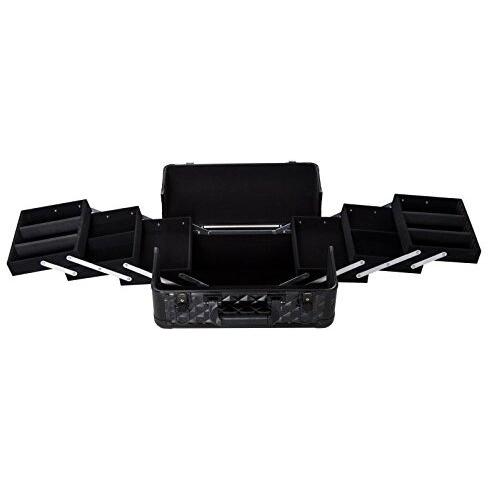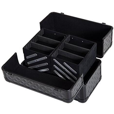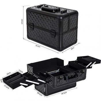 Maleta de Maquillaje Profesional Estuche para Cosmética con 6 Cajones Extensibles y Cierre Llave 36x23x58cm Negro