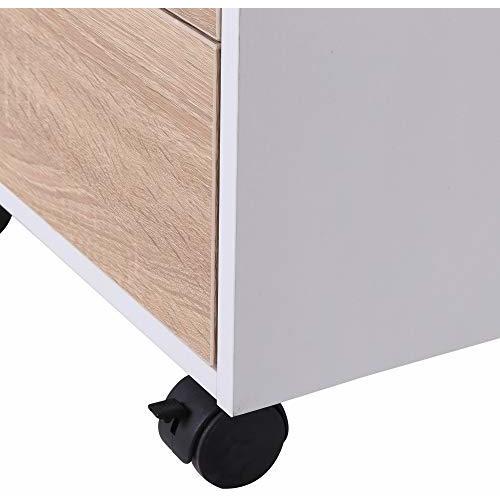 Homcom cajonera de oficina con ruedas mueble archivador con 3 cajones cajonera para escritorio estudio 40x50x57,5 cm roble y blanco