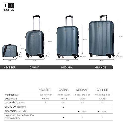 Itaca - Maletas De Viaje Cabina - Maletas De Cabina Con 4 Ruedas - Maletas De Viaje Pequeñas Ligeras. Trolley Cabina Equipaje De Mano. Maleta Cabina Con Candado De Combinación T71550