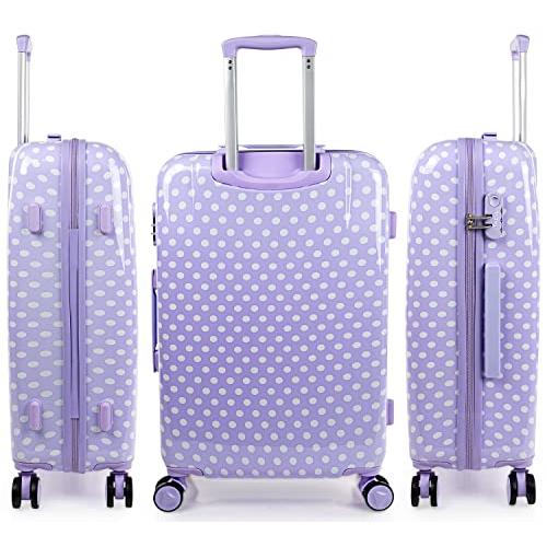 Descubre la maleta de cabina lila para niños, con cuatro ruedas omnidireccionales y candado de combinación. Su construcción ligera en policarbonato ...