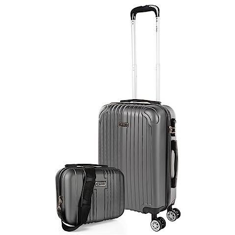 Itaca - Juego De Maletas De Viaje Ligeras 2 Pzs. Set Trolley ABS 4 Ruedas Grande + Neceser Rígidas. Conjunto Equipaje Avión. Candado Con Combinación T71570B