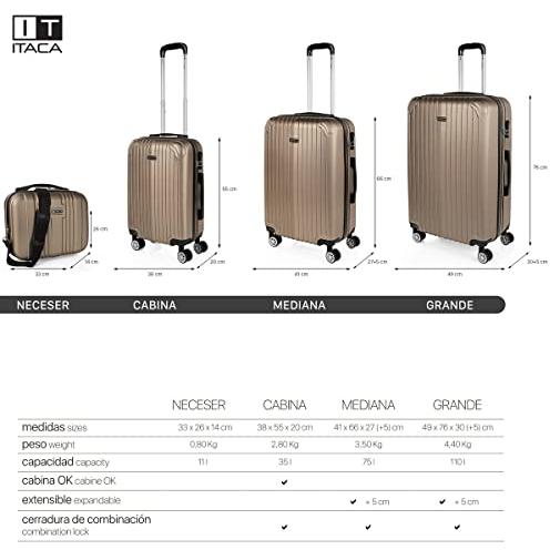 Itaca - Juego De Maletas De Viaje Ligeras 2 Pzs. Set Trolley ABS 4 Ruedas Grande + Neceser Rígidas. Conjunto Equipaje Avión. Candado Con Combinación T71570B