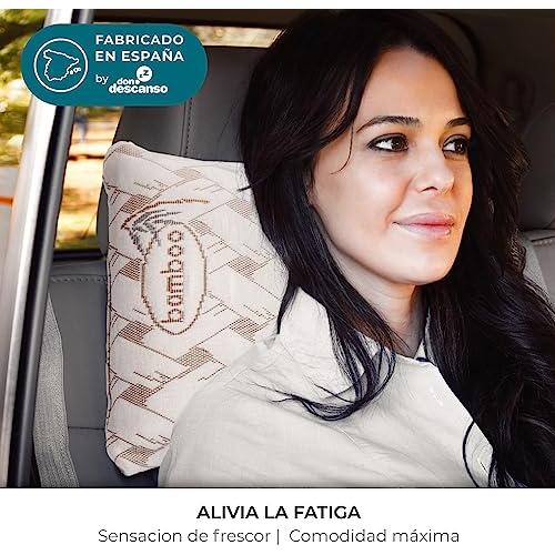 Almohadas de viaje con espuma viscoelástica y tejido de bambú, 42 × 24 cm, diseñadas para coche y avión; su forma ergonómica sostiene cuel ...