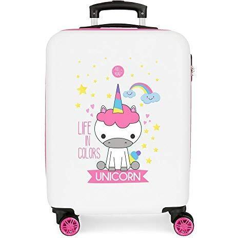 Maleta cabina Roll Road Little Me Unicorn blanca 37x20x55 cm. Dura e impermeable 4 ruedas