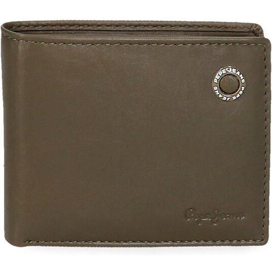 Pepe Jeans. Cartera de piel Badge con tarjetero Caqui Pepe Jeans