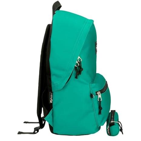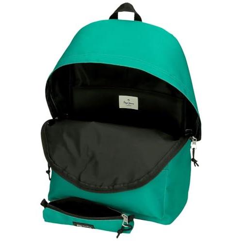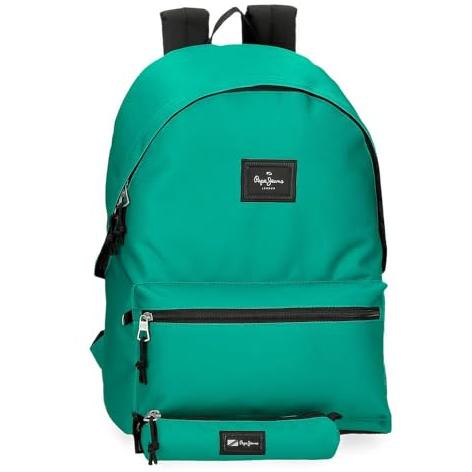 Mochila Porta ordenador + Estuche Escolar Pepe Jeans Aris en verde.