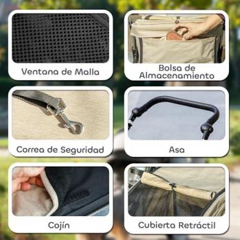Carrito para perros medianos y pequeños con cesta de almacenamiento y capota ajustable