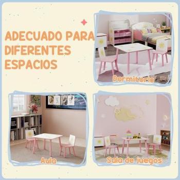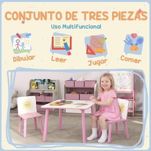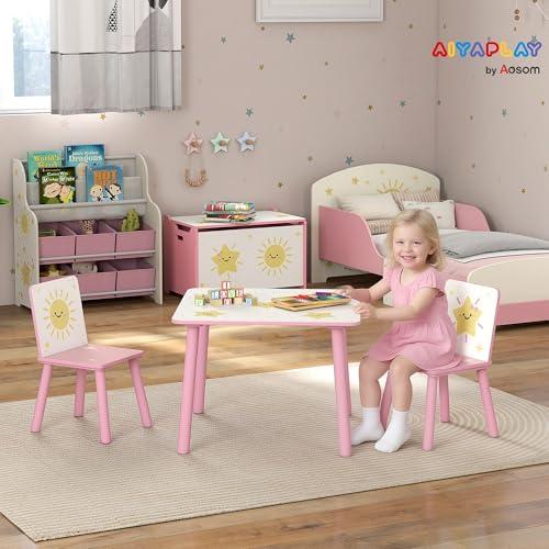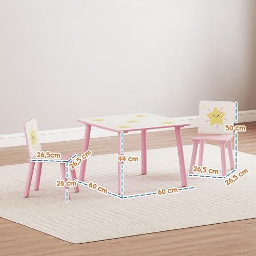 Aiyaplay mesa y sillas infantiles de 3 piezas, mesa infantil con 2 sillas de madera de pino, juego de muebles con dibujos de estrella para niños de +3 años, para dormitorio, sala de juegos, rosa