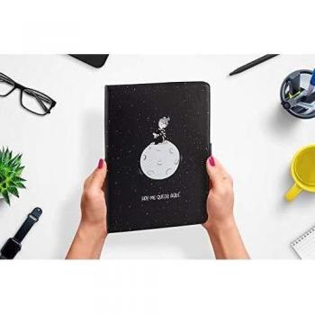 Cubierta estilo libro para tablet de 9,7 a 10,2 pulgadas con ilustración lunar sobre fondo negro; ofrece protección ligera, acceso sin obstáculos a ...