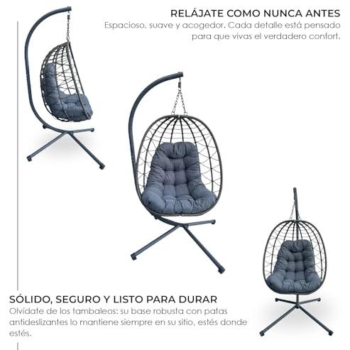 Silla colgante yoevu gris | confort premium para interior y exterior | ideal para terraza, jardín o balcón