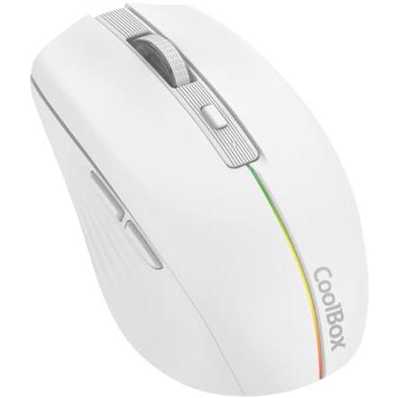 CoolBox W01 Ratón PC Inalámbrico 2.4GHz con 6 Botones, Batería Recargable, 1600 dpi, Tecnología Óptica, Iluminación Rainbow. Color Blanco