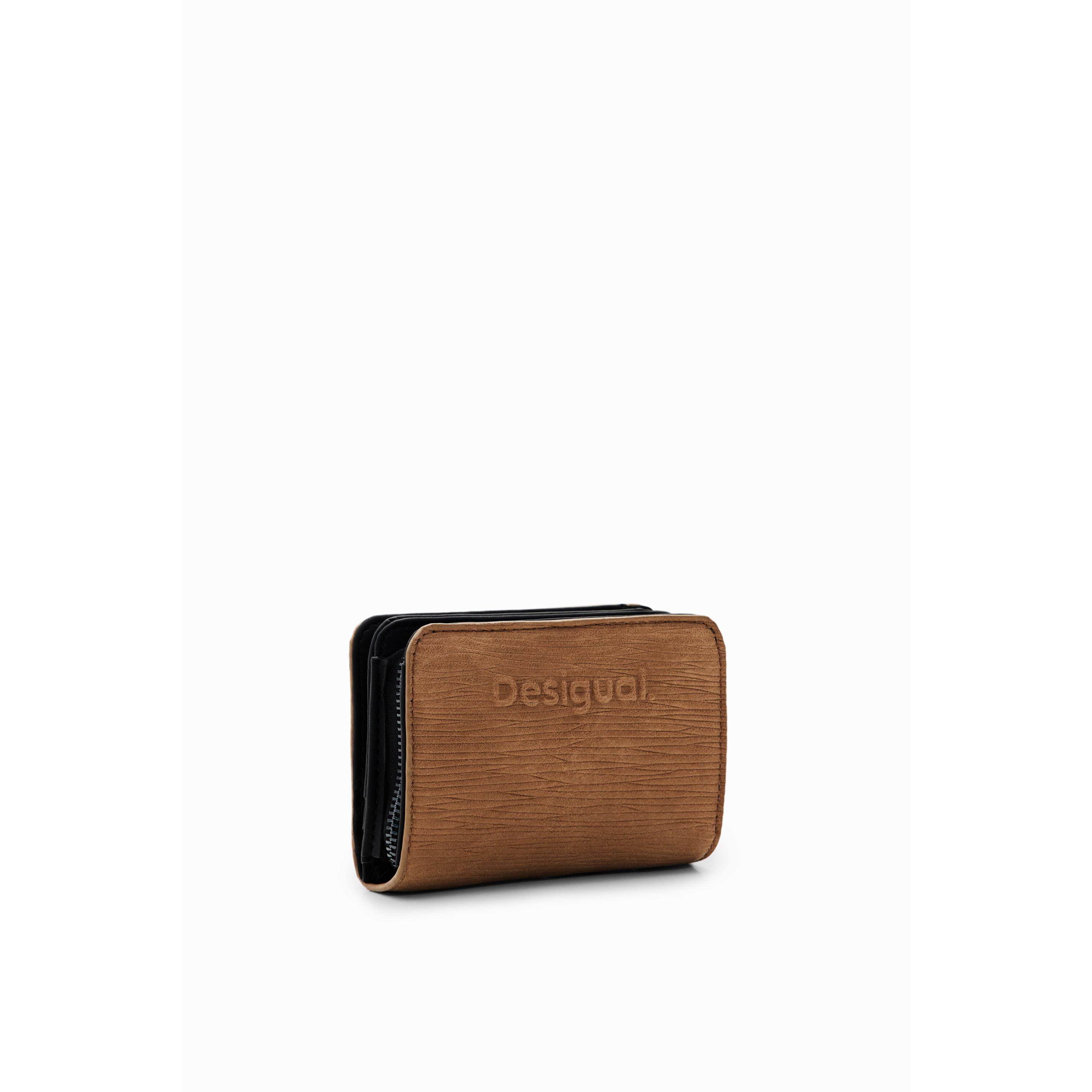 Desigual - Cartera pequeña en marrón con grabado y tachuelas