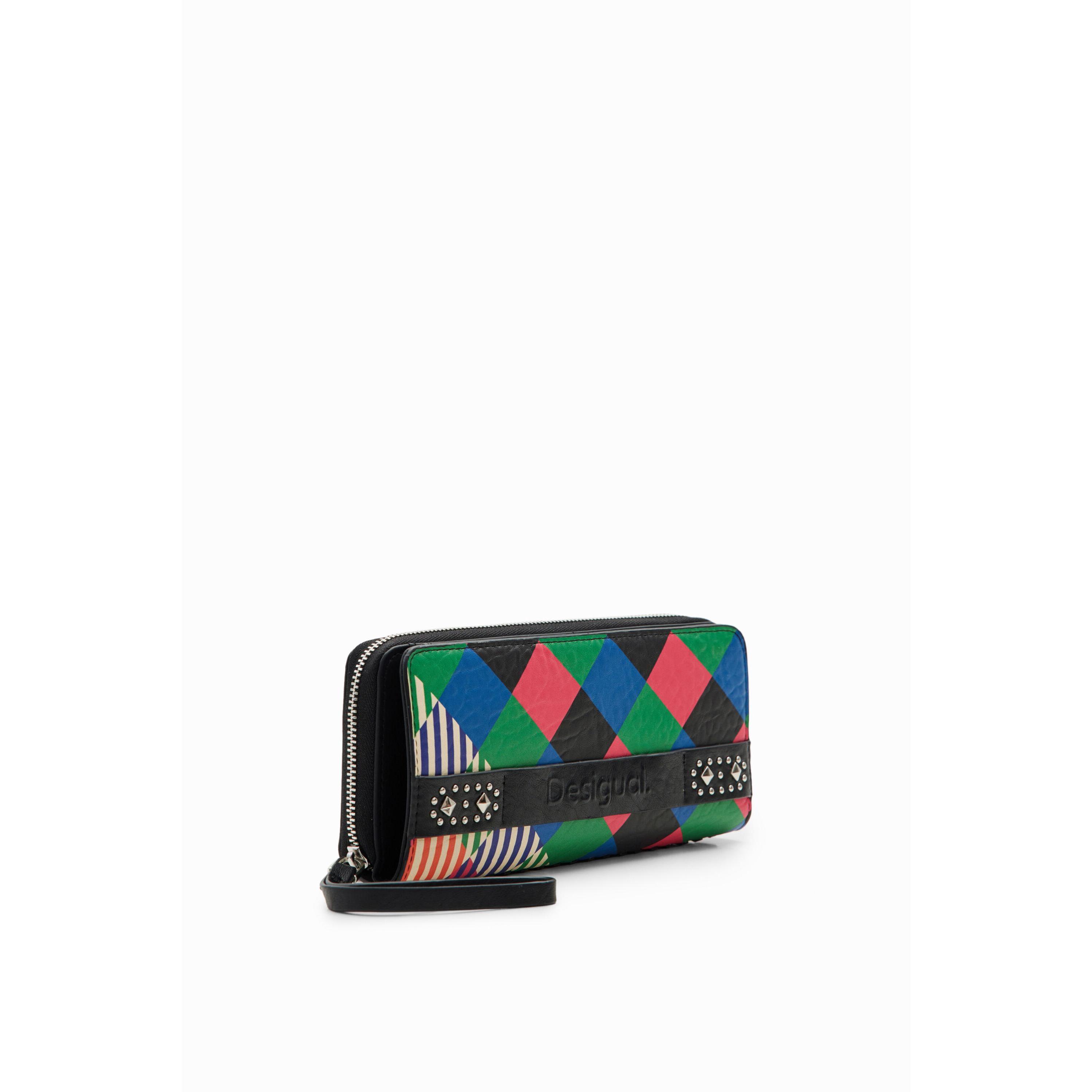 Desigual - Cartera grande de rombos multicolor con cremallera