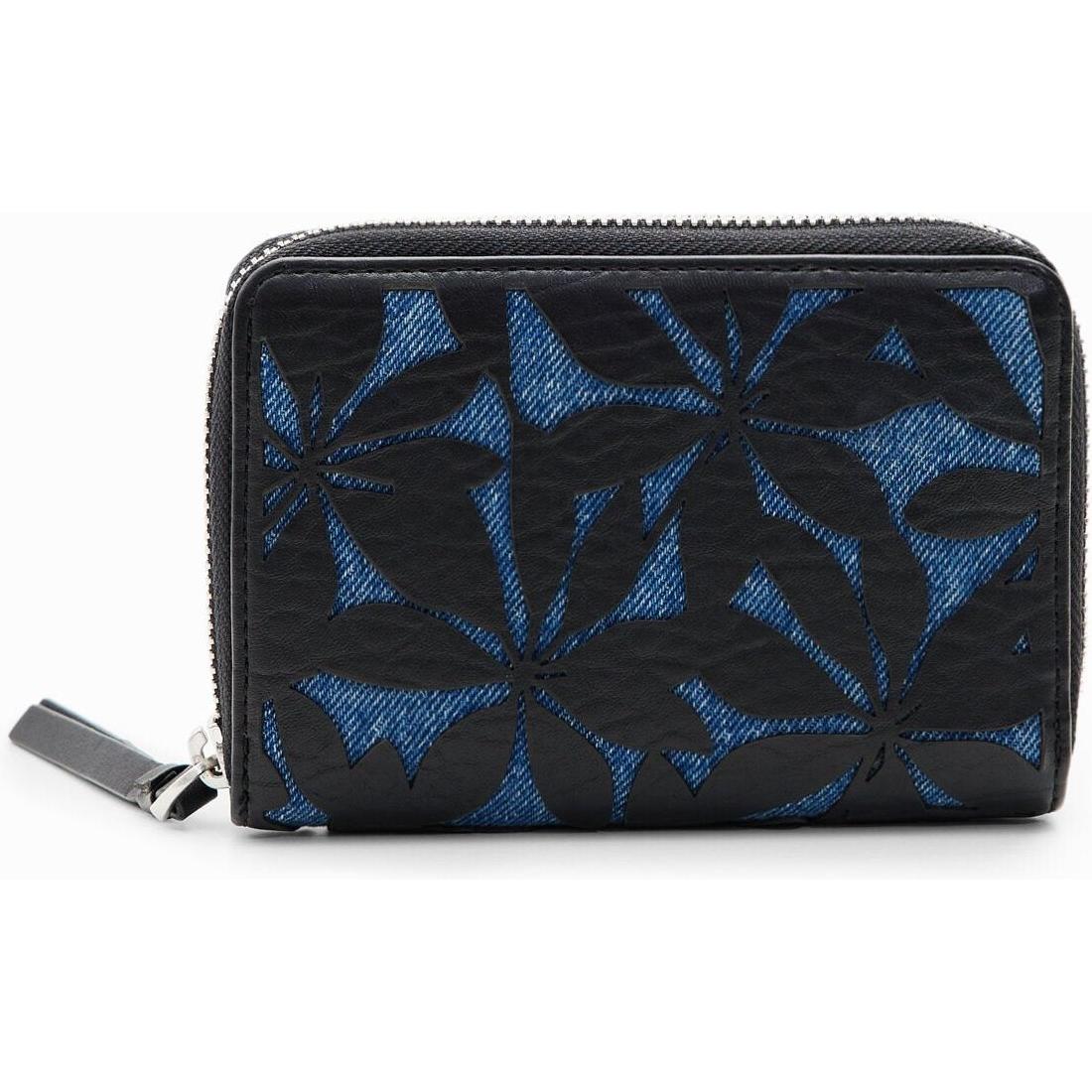 Desigual, Cartera pequeña flores troqueladas, Poliuretano, Azul, U