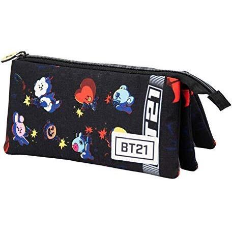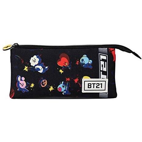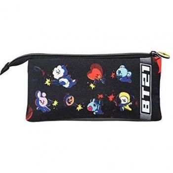 Estuche Portatodo Triple BT21 Squad Negro con Cremallera