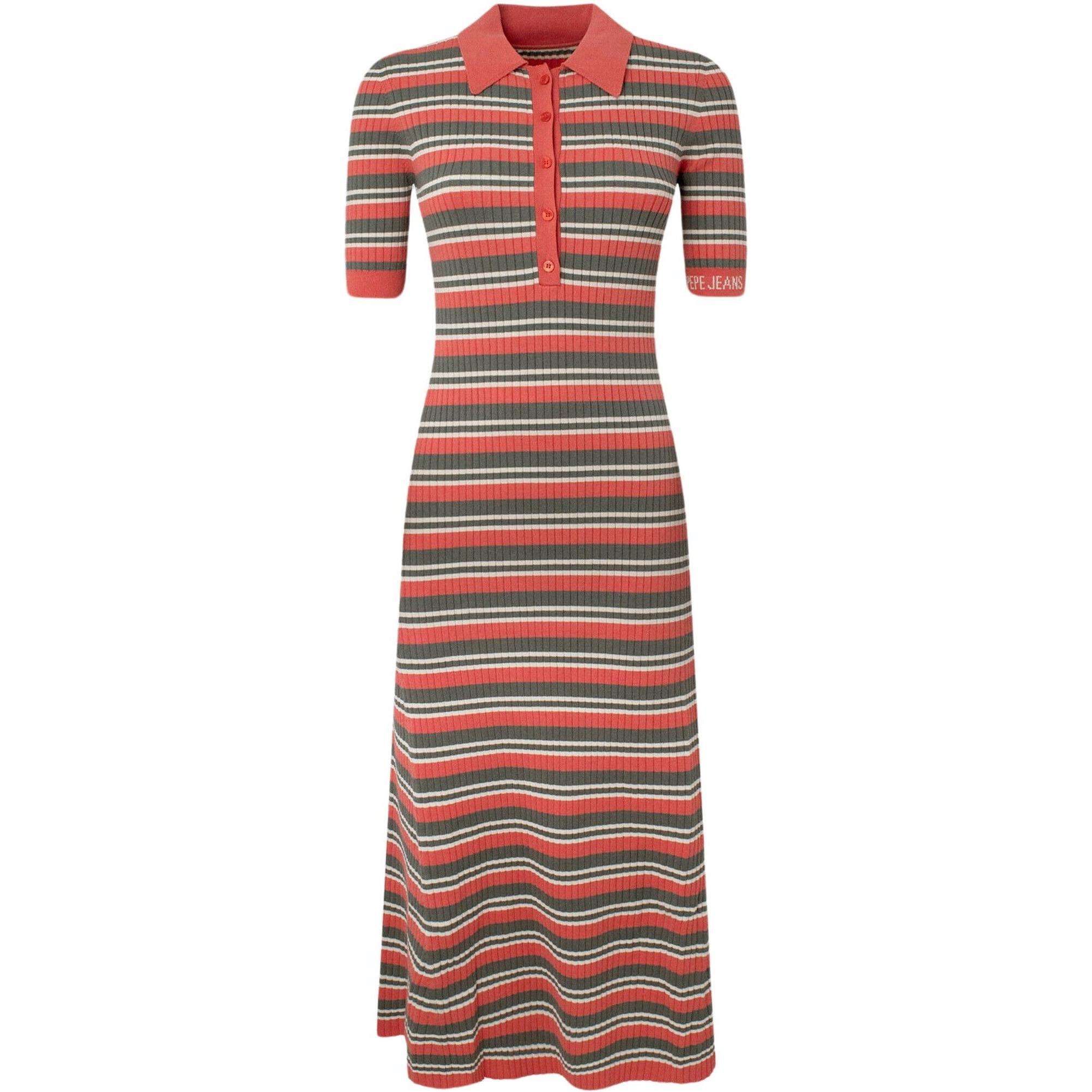 Pepe Jeans Vestido largo con estampado de rayas y manga corta.