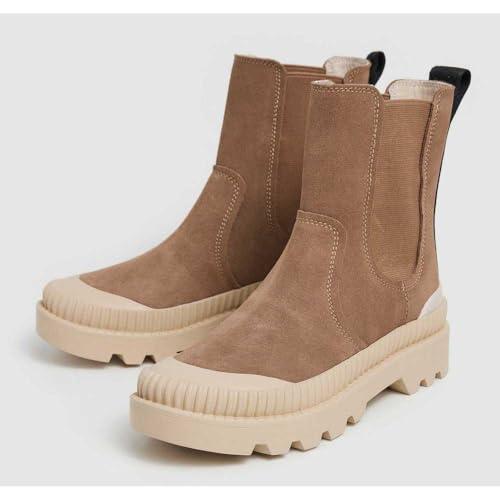 Pepe Jeans para mujer. PLS50539 Botines de piel Ascot High marrón (40), Plano, Ante, Ninguno, Casual