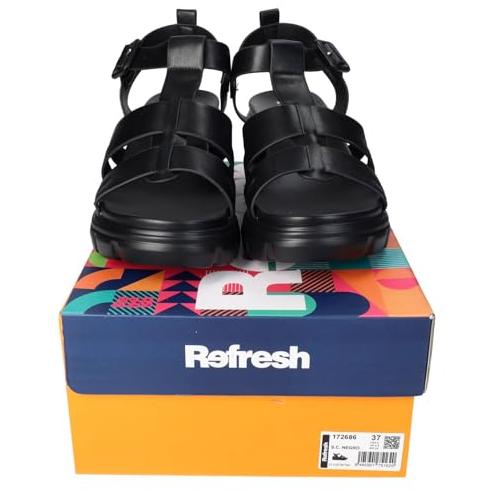 Sandalias marca REFRESH para mujer en color negro. Sandalias Plataforma Mujer Refresh – Estilo Gladiadora