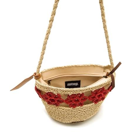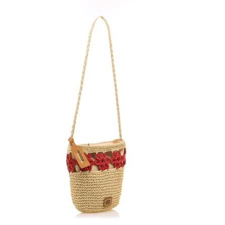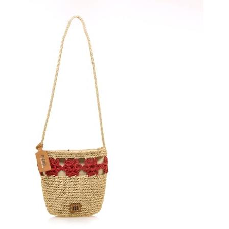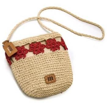 Mustang - Bandolera de mujer en rafia con detalle de flores.