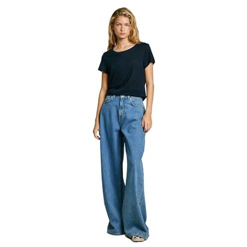 Pepe Jeans para mujer. PL506049 Camiseta De Manga Corta Megan marino (XL), Casual, Algodón, Sostenible