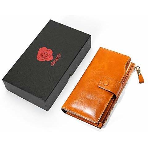 Monederos Mujer Carteras de Cuero Genuino Gran Capacidad RFID Bloqueo Cera de Lujo Piel Genuina Hecho a Mano Bolsos Largo de Mujer con Cremallera de Bolsillo (Empaquetado con Caja de Regalo)